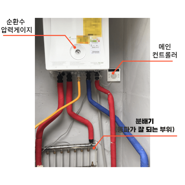 분배기 : 순환수를 실내의 각 방에 나누어 주는 역할을 합니다. 순환 후 식은 물이 돌아오므로 동파가 잘 됩니다.