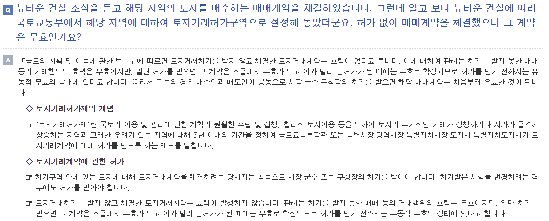 허가 없이 체결한 토지거래계약은 효력이 없습니다.